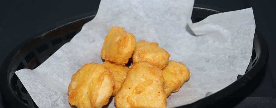 Knapriga och krispiga kycklingnuggets som passar som en sidorätt. OBS. Samfriteras med animaliska produkter. ENG: Crunchy and crispy chicken nuggets that are suitable as a side dish. NOTE. Co-fried with animal products. Innehåll: Kycklingbröstkött (57%), stekolja (palm ölja), vatten, mjöl (vete, majs, tapioka), fyllnadsmedel: cellulosa, salt, modifierad stärkelse, vasslepulver, stabiliseringsmedel (E541, E450), kryddor (peppar, selleri), stärkelse, surhetsreglerande medel (E500, E341), äggpulver.