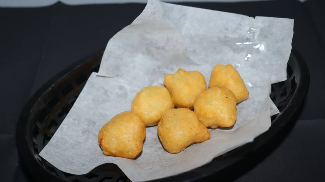 Krispiga och smakrika chili cheese med en lätt hetta. OBS. Samfriteras med animaliska produkter. ENG: Crispy and flavourful chili cheese bites with a mild heat. Note: Fried in the same oil as animal products. Innehåll: SmältOST (31%) (ost, vatten, smör, mjölkprotein, smältsalter: E331iii, vasslepulver, salt, färg: E160a och E160c, stärkelse), panering (VETEmjöl, VETEstärkelse, salt, bakpulver (E450, E500, E503), VASSLEPULVER, Stabilisator: E464, Färg: E160c, jäst, solrosolja), vatten, solrosolja, grön paprika (10%), jalapenos (4%).