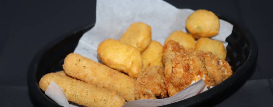 ENG: A mix of our chili cheese, chicken nuggets, mozzarella sticks, wings. Served 3 of each.