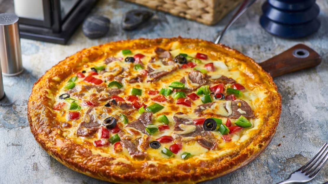 Tomat, ost, lök, ägg,vitlöksdoftande köttfärs champinjoner, svartpeppar