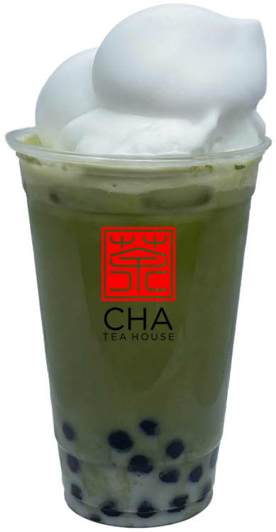 Mactha Latte served with tapioca pearls. On top of that our delicious home made cream cheese foam. This drink is free from gluten.