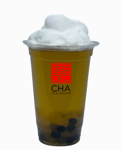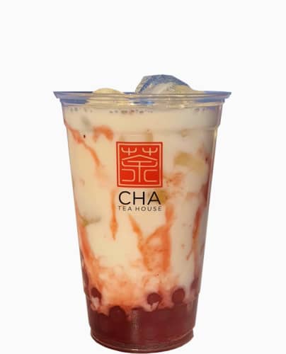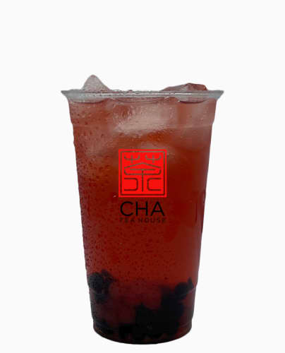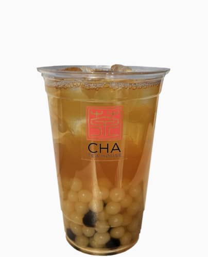 Jasmine green tea served ice cold with a mix between fruity poppings and tasty chewy ''QQ'' boba pearls. Perfect when you want something cooling in the sun.