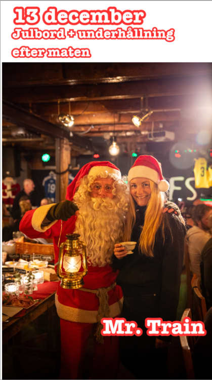 Vårt julbord är klassiskt med en twist från havet – sill, skaldjur och fisk är självklara inslag, och ibland smyger det även in någon överraskning... 18.00 startar minglet. Här bjuds det på glögg, pepparkakor och julcréme. 19:00 Julbordet dukas upp i vår originalpub och står framme till ca 21.00. Därefter väntar musik, skratt och dans – en kväll att minnas! Atmosfären, läget och värmen hos oss gör att du verkligen kan insupa julen och känna gemenskapen. Efter middagen bjuder Mr. Train in till fest där du garanterat får chans att dansa bort några av julens kalorier! Denna biljett innefattar: Julbord + sittplats nere i puben hela kvällen + entré till kvällens underhållning. Köpt biljett återlöses ej. Kvittot hittar du inne på appen eller order.happyorder.io efter att du loggat in med ditt telefonnummer. Visa detta vid ankomst. (Har du någon funktionsvariation, allergi eller specialbehov – kontakta oss direkt på bokning@franses.nu) Inte från ön? Det går alldeles ypperligt att köra bil, åka kollektivt eller åka båt. Det går en gratis bilfärja dygnet runt mellan Hönö och Lilla Varholmen. Kika på Västtrafiks reseplanerare eller Google maps för att hitta till Hönö Klåva (Västra vägen 11, 47542 Hönö)