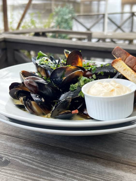 Vitlök, tomat, salladslök, chili, basilika, vitt vin, grädde serveras med bröd & aioli Innehåller gluten, laktos