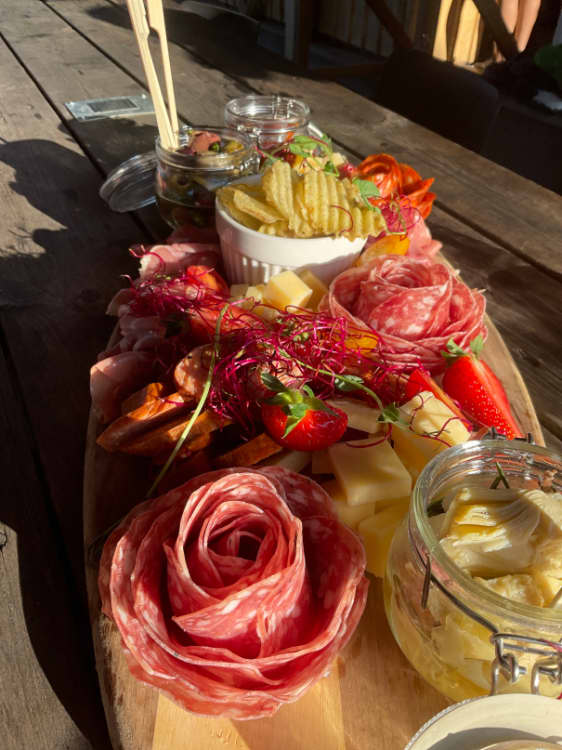 Salami, ölkorv, ost, chips, oliver, lufttorkad skinka Innehåller laktos