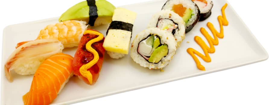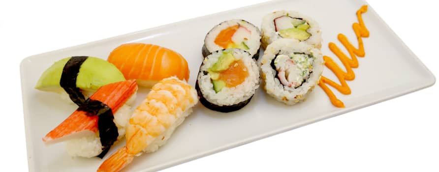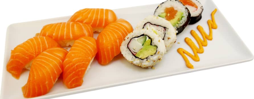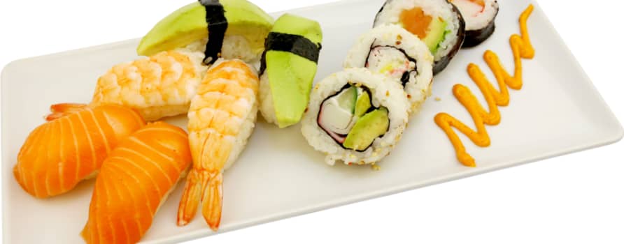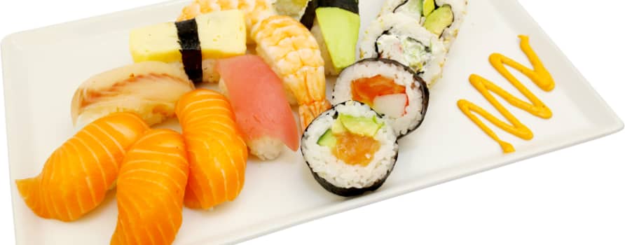(Lax,tonfisk, vitfisk,räkor, omelet, avocado, 4 blandademaki)