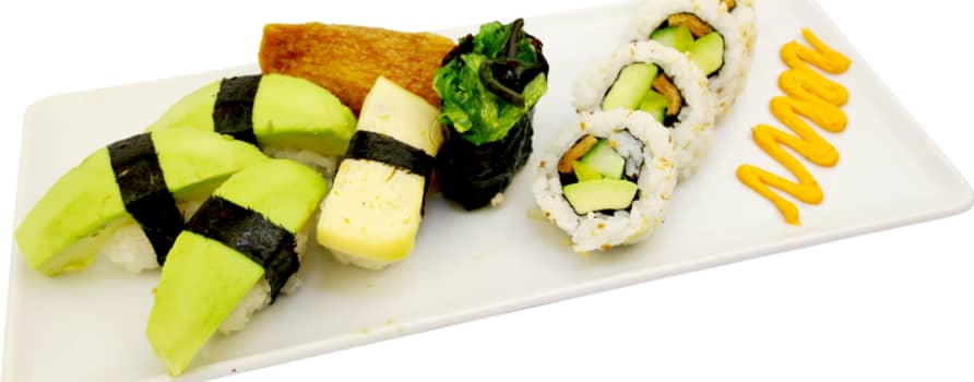 (1 Omelet, 3 avocado, 1 Tofu, 1 sjögräs, 4 vegmaki)
