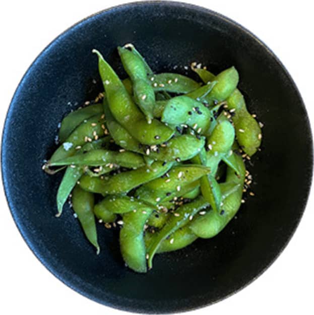 Edamame with yuzu juice, sesame and sea salt. Allergens: Sesame