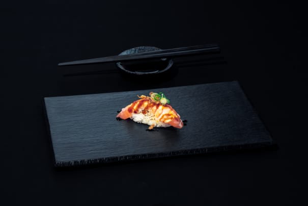 Toppad med chilimajo, teriyakisås & rostad lök