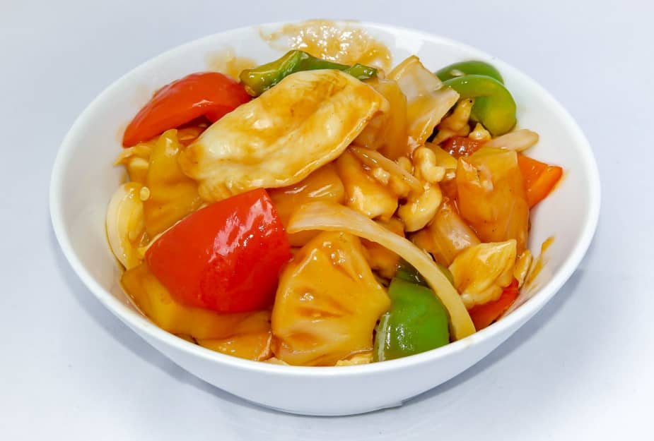 6 - Kycklingfilé med ananas i söstsursås med ris