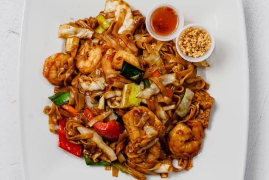 Risnudlar med räkor, tofu och jordnötter 1 chili = stark 2 chili = mycket stark 3 chili = ännu starkare Allergiinformation: Innehåller Jordnötter, Vetemjöl, Ägg, Fisk, Blötdjur, Soja/sojabönor och Skaldjur. *Spice ´N Rice egna woksås innehåller en liten mängd vete, så alla som i vanliga fall klarar av att äta soja, kan äta vår wowsås.