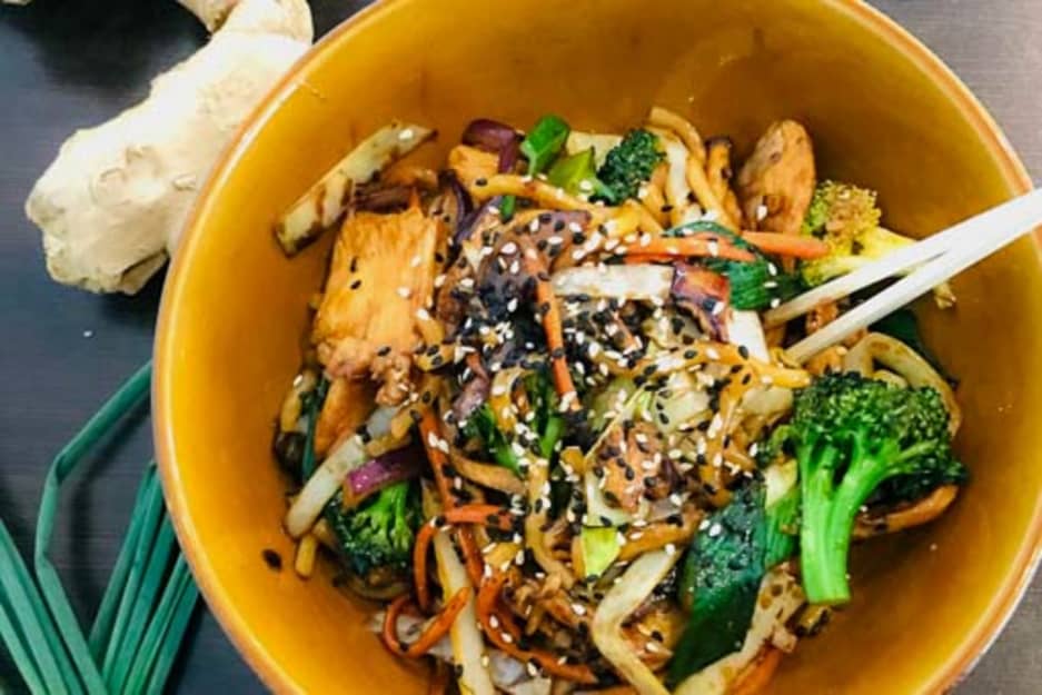Vetenudlar med tofu, grönsaker och teriyakisås Allergiinformation: Innehåller Vetemjöl. *Spice ´N Rice egna woksås innehåller en liten mängd vete, så alla som i vanliga fall klarar av att äta soja, kan äta vår wowsås.