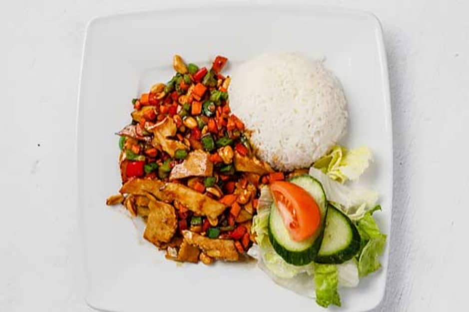Sojaprotein, jordnötter och grönsaker 1 chili = stark 2 chili = mycket stark 3 chili = ännu starkare Allergiinformation: Innehåller jordnötter och soja/sojabönor. *Spice ´N Rice egna woksås innehåller en liten mängd vete, så alla som i vanliga fall klarar av att äta soja, kan äta vår wowsås.