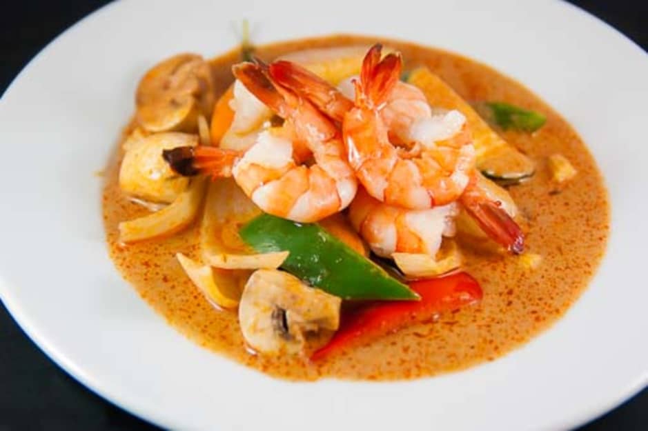 25 - Stekta räkor med Panang curry och kokosmjölk (1 chili)