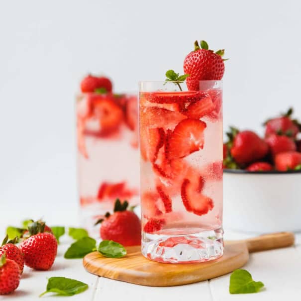 Vodka, jordjubbspure, lime, sockerlag, jordgubbar, sockerskum
