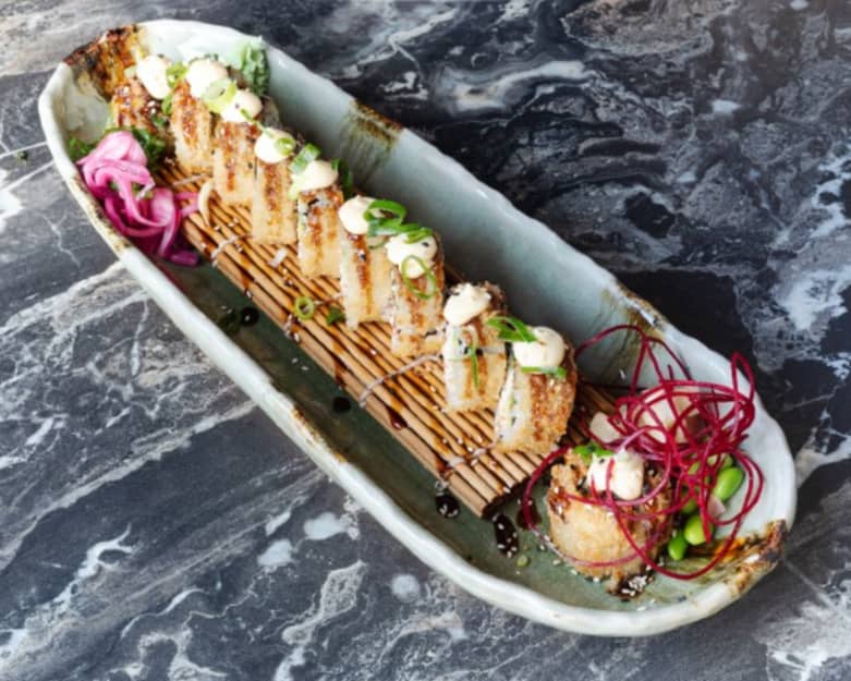 Friterad Insideout, krabbröra avokado toppad med japansk majonäs