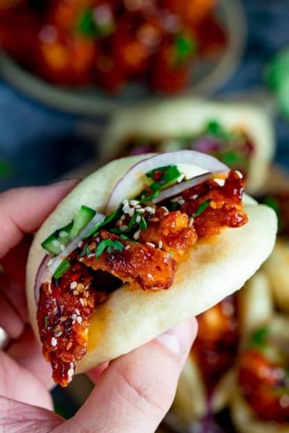 1 st bun med friterad kyckling, krispsallad & kimchi