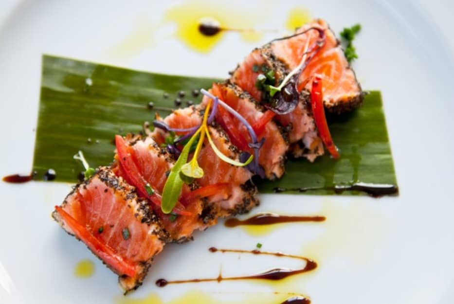 4 bitar lätt halstrad lax med fräschör av citrus & ponzu